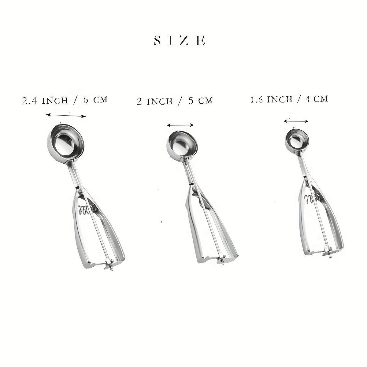 3pcs Cookie Scoop Set, Stainless Steel Ice Cream Scooper With Trigger Release, Large/Medium/Small Cookie Scooper For Baking, Cookie Scoops For Baking